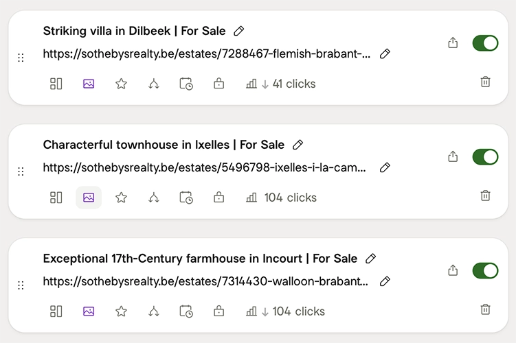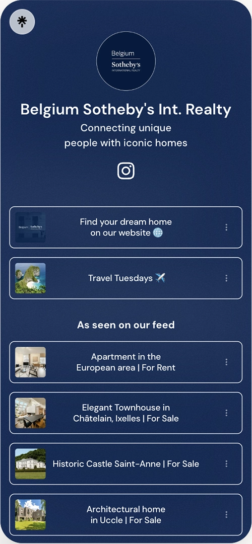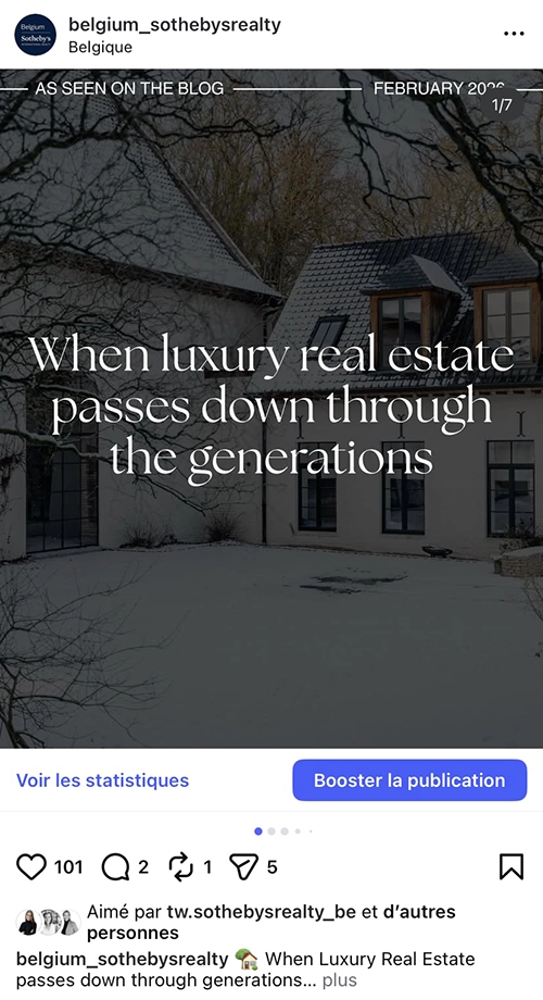 Belgium Sotheby’s International Realty évolue dans un universchaque détail visuel participe à l’expression du luxe et de l’art de vivre. Sa communication repose sur une mise en valeur rigoureuse et cohérente des biens, associant esthétisme, sobriété et storytelling afin de refléter une image haut de gamme, intemporelle et parfaitement maîtrisée.