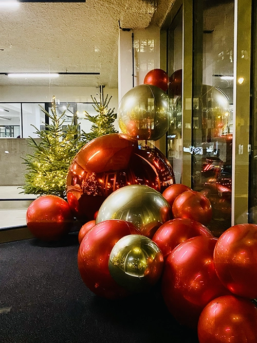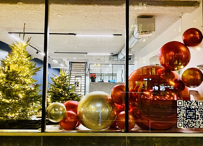 Nos bureaux, dessinés par un architecte reconnu, sont visuellement très forts, mais lorsqu’on ne connaît pas Sotheby’s, il n’est pas toujours évident de comprendre qu’il s’agit d’une agence immobilière. J’ai donc vu Noël comme une vraie opportunité : attirer le regard, surprendre, donner envie de s’arrêter devant la façade. Une occasion d’éveiller la curiosité et d’amener certains passants à se demander : qu’est-ce que Sotheby’s Realty ?